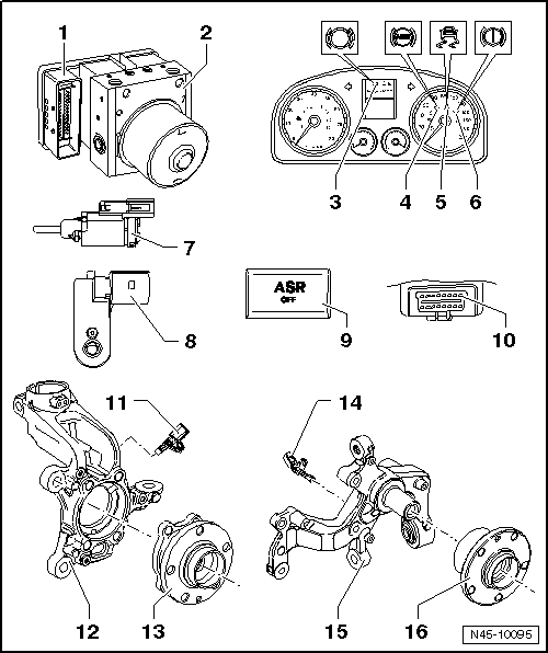 | 14 - | Capteur de vitesse arrière droit -G44-/capteur de vitesse arrière gauche -G46- |