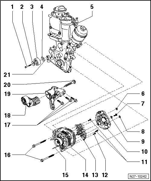 Alternateur : dépose et repose, moteur FSI 1,4 l