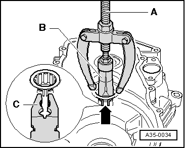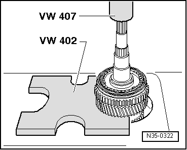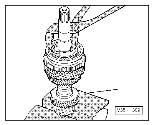 | Après la dépose du circlips → Repère, le chasser avec le pignon baladeur de 2e vitesse → fig. |