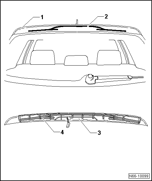 | Les surfaces de collage -2- sur la baguette de maintien et sur le hayon sont enduites de primer. |