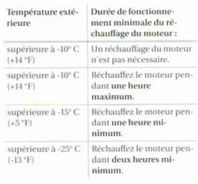 En raison des propriétés de démarrage à froid du bioéthanol, il est difficile de démarrer le moteur en cas de températures extérieures basses. Par des températures extérieures inférieures à -10 C (+14 F), il est nécessaire de réchauffer le moteur ou d'augmenter la proportion d'essence.