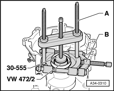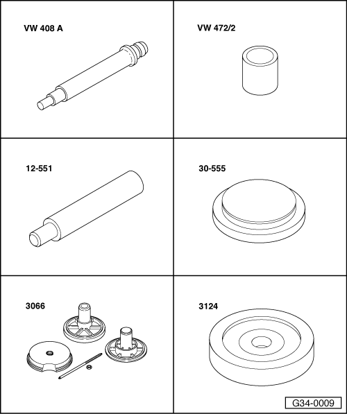 | - | Positionner la douille-entretoise -VW 472/2- et le poussoir