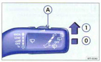 Fig. 80 Levier d'essuie-glace : réglage du détecteur de pluie (A).