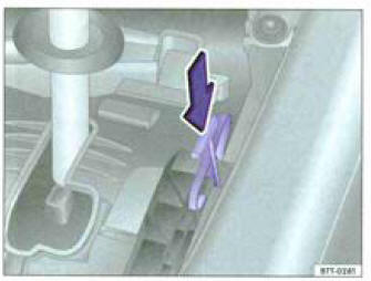 Fig. 184 Déverrouillez d'urgence le blocoge du levier sélecteur.