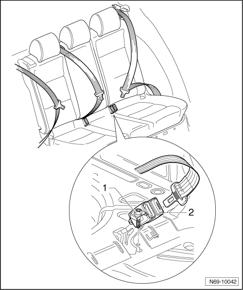 | - | Dévisser la vis -1- (40 Nm) et retirer le double boîtier de verrouillage -2- de la carrosserie. |