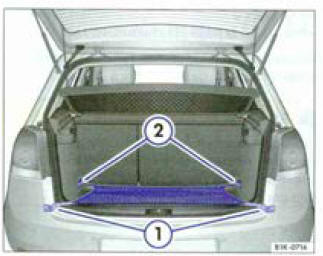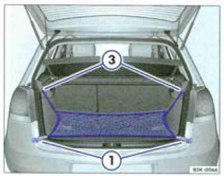 Fig. 92 Dans le coffre à bagages : filet de coffre à bagages accroché devant