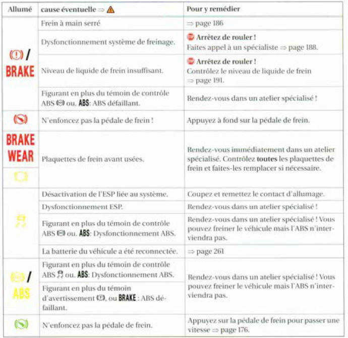 Lors de la mise du contact d'allumage, certains témoins d`alerte et de contrôle s'allument brièvement lors du contrôle des fonctions. Ils s'éteignent peu de temps après.