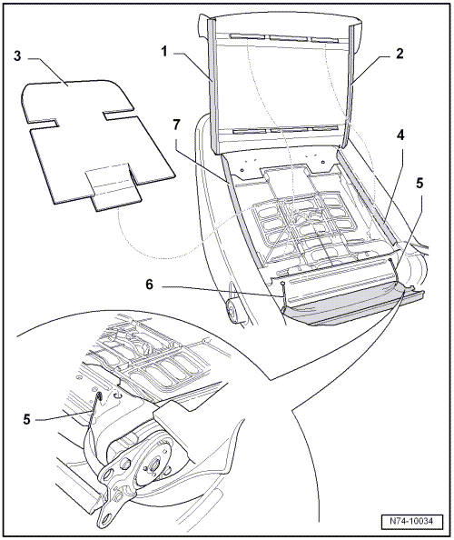 | - | Retirer la garniture -5- et le rembourrage -6- de l'armature de dossier7-. |