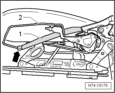 | - | Retirer les profilés latéraux -1- et2- de leur logement et rabattre le revers de la garniture vers le haut. |