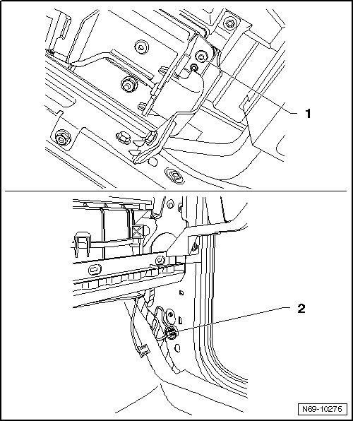 | - | À l'aide de la vis -1-, fixer une des extrémités du câble de masse du côté droit du sac gonflable du passager avant. |