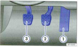 Fig. 121 Pédales sur véhicules avec boite de vitesses mécanique (1) :accélérateur,
