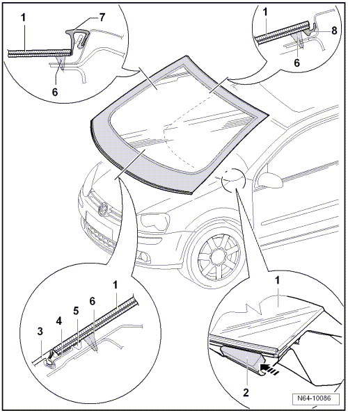 | Si la lèvre d'étanchéité est endommagée au moment du découpage, il faut remplacer le pare-brise. |