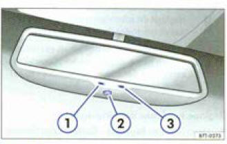 Lorsque le contact d'allumage est mis, le capteur (3) fait passer le rétroviseur intérieur automatiquement en position nuit en fonction de l'obscurité et en cas de lumière incidente venant de l'arrière.