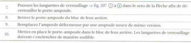Fig. 207 Bloc de feu arrière dans la carrosserie : dépose du porte ampoule.(1)