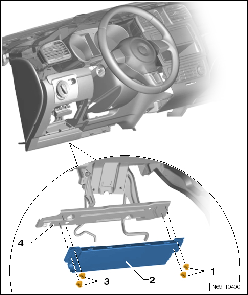 | - | Enlever le sac gonflable de genou -2- du support -4-. |
